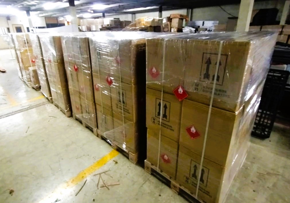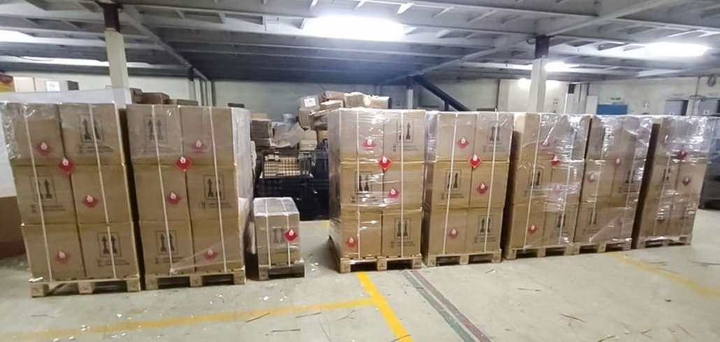 Each drum was repacked individually into a 4GV X25 UN-certified fibreboard box in accordance with applicable UN packaging instructions. In total, 128 drums were handled under controlled conditions to maintain package integrity and traceability. The packed boxes were then palletised to support safe mechanical handling and load stability, with 18 boxes arranged on each of 7 full pallets. The remaining boxes were consolidated onto another pallet to ensure balanced weight distribution bringing the total number of pallets to 8.